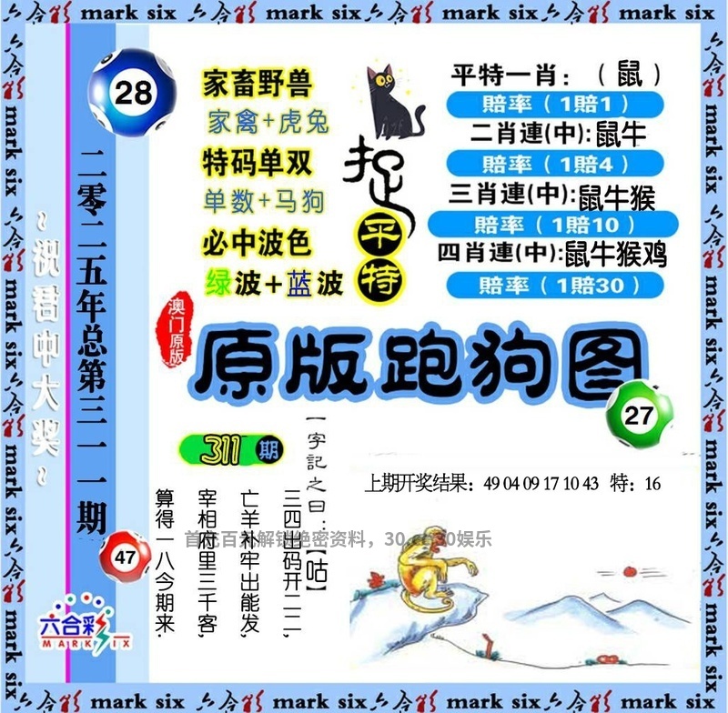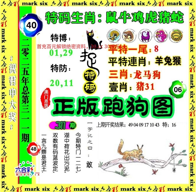 | 311期:平特一尾【666尾】开:鼠06准 |