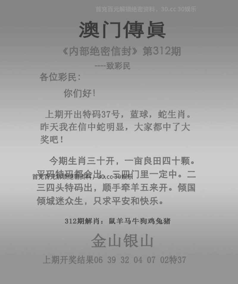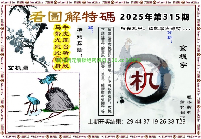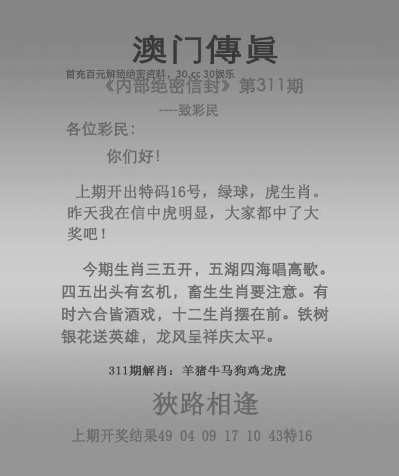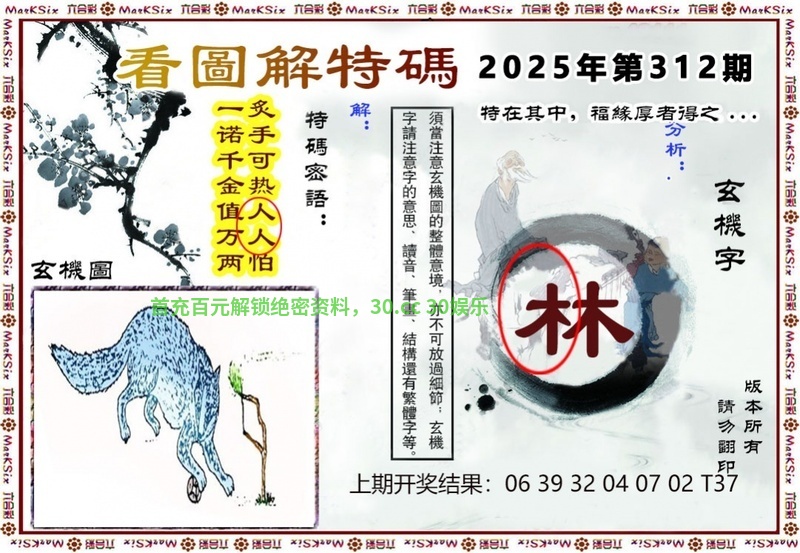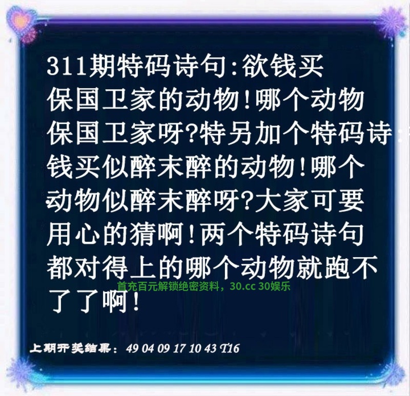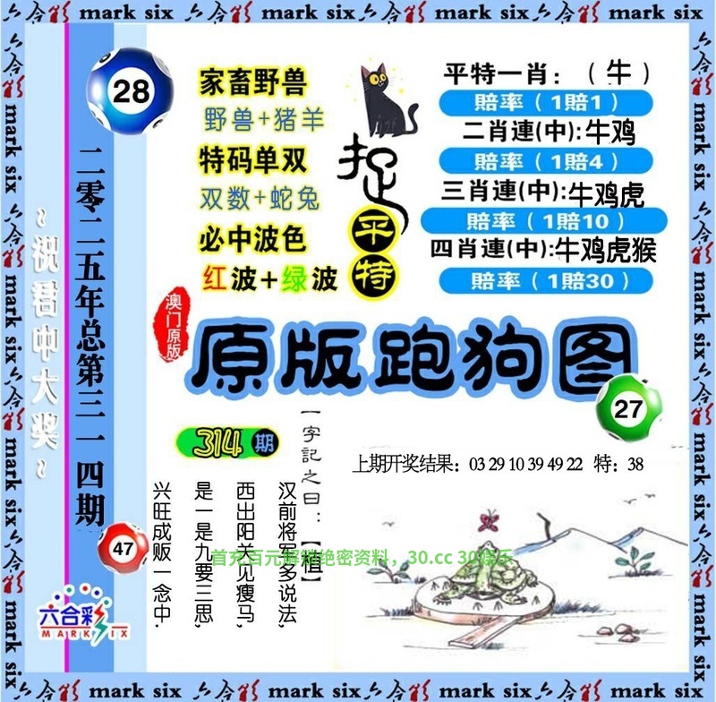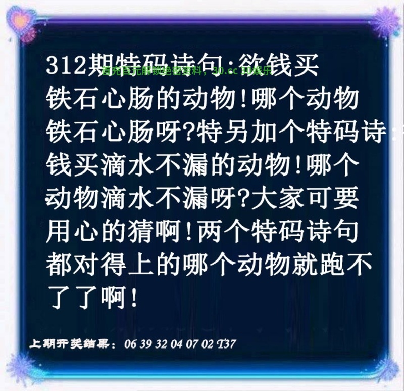 | 307期:正版【猜特输尽光】开狗20准 【今期买牛输尽光,要知客处平安日】 |