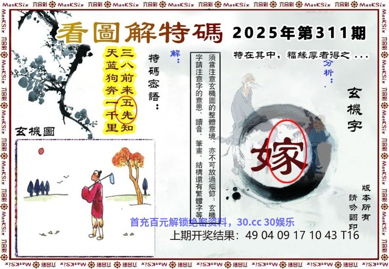 | 311期:正版【猜特输尽光】开蛇37准 【今期买鼠输尽光,本宜新枝泉水少】 |