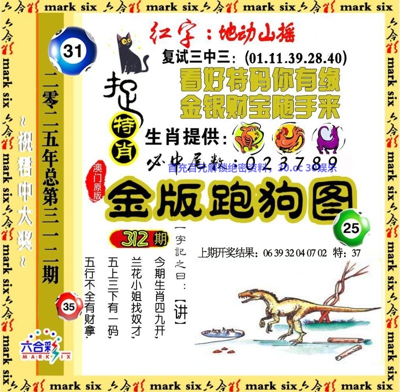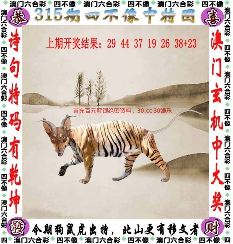 | 310期:正版【猜特输尽光】开虎16准 【今期买鸡输尽光,戏彩娱亲也收录】 |