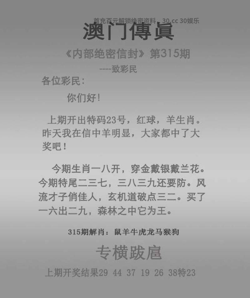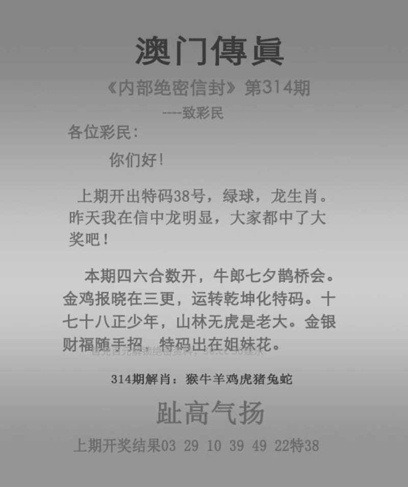 | 314期:正版【猜特输尽光】开羊23准 【今期买牛输尽光,正顺香火传四海】 |